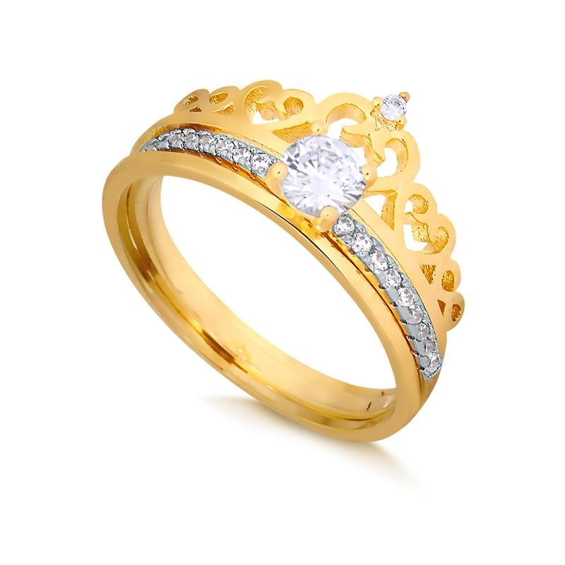1 Anel Coroa Com Solitário Encaixado E Pedras De Zircônias