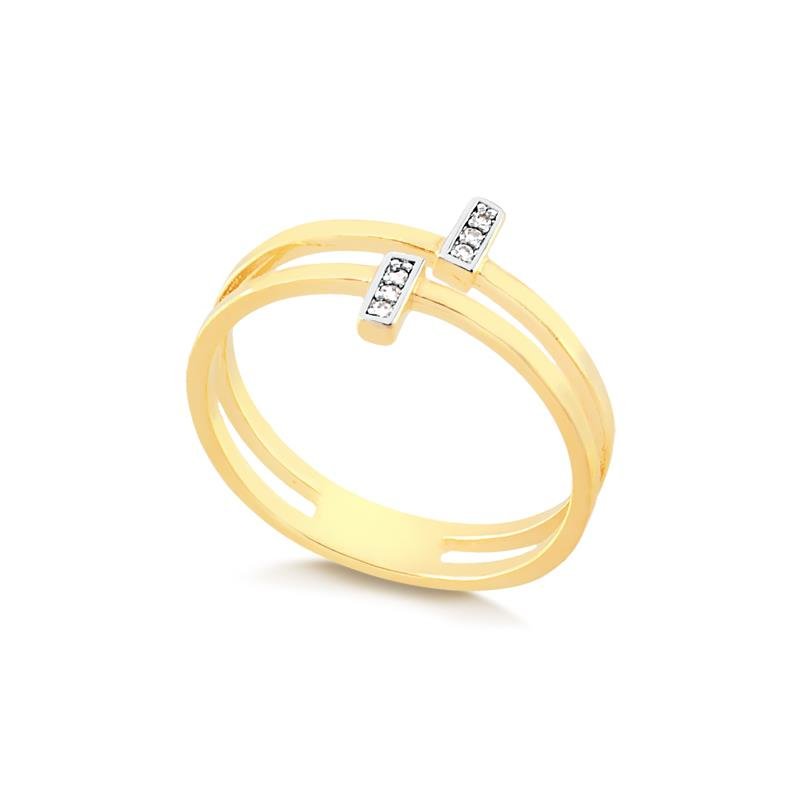 1 Anel Duplo Com Pedras De Zircônia Folheado A Ouro