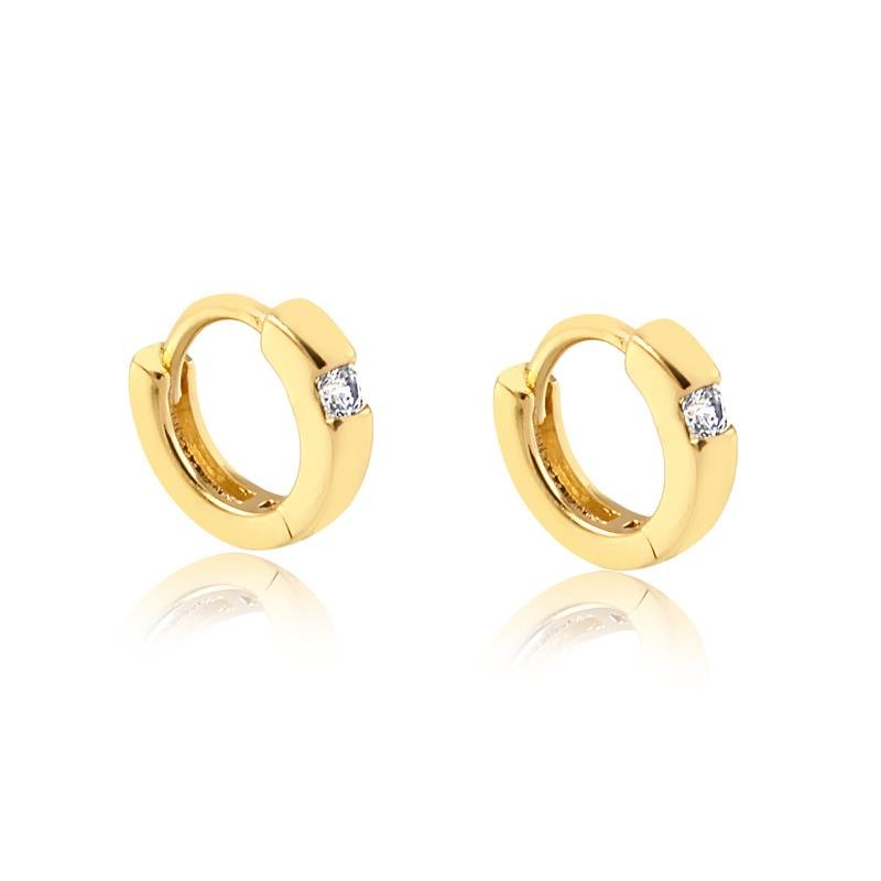 1 Brinco Argola Pequena Com Ponto De Luz Folheado A Ouro