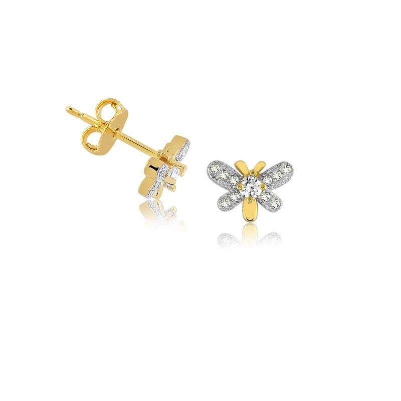 1 Brinco Borboletinha Folheado A Ouro Com Pedras De Zircônia