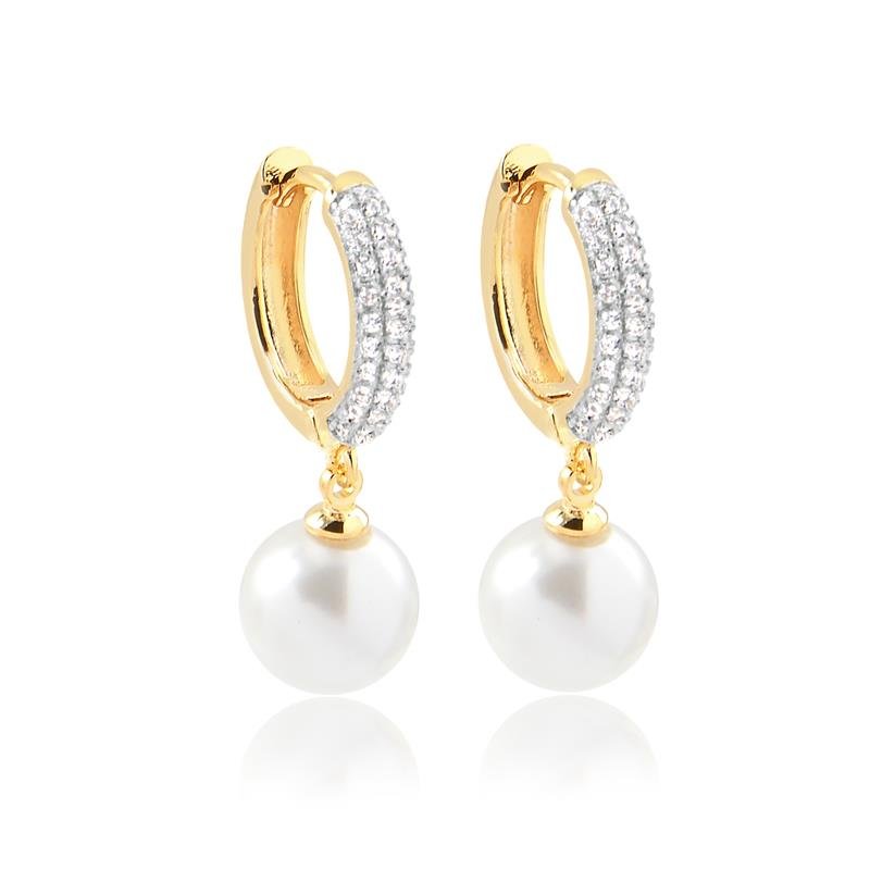 1 Brinco Clic Com Perolas Shel E Zircônias Folheado A Ouro