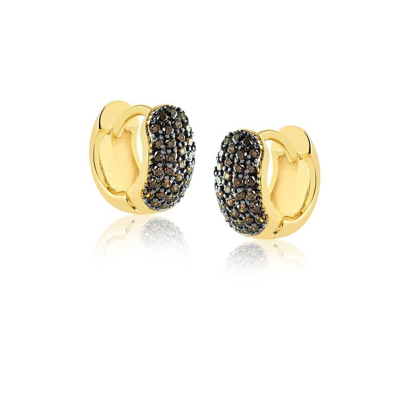 1 Brinco Click Folheado A Ouro Com Pedras De Zircônias Coffee