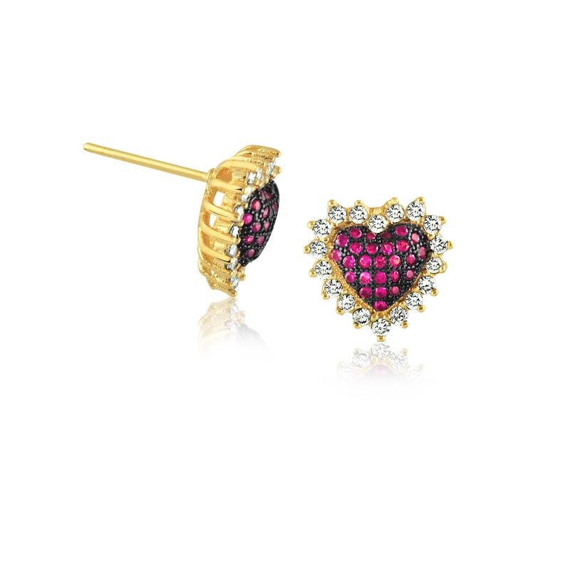1 Brinco Coração Com Microzircônias Rubi E Zircônias Laterais