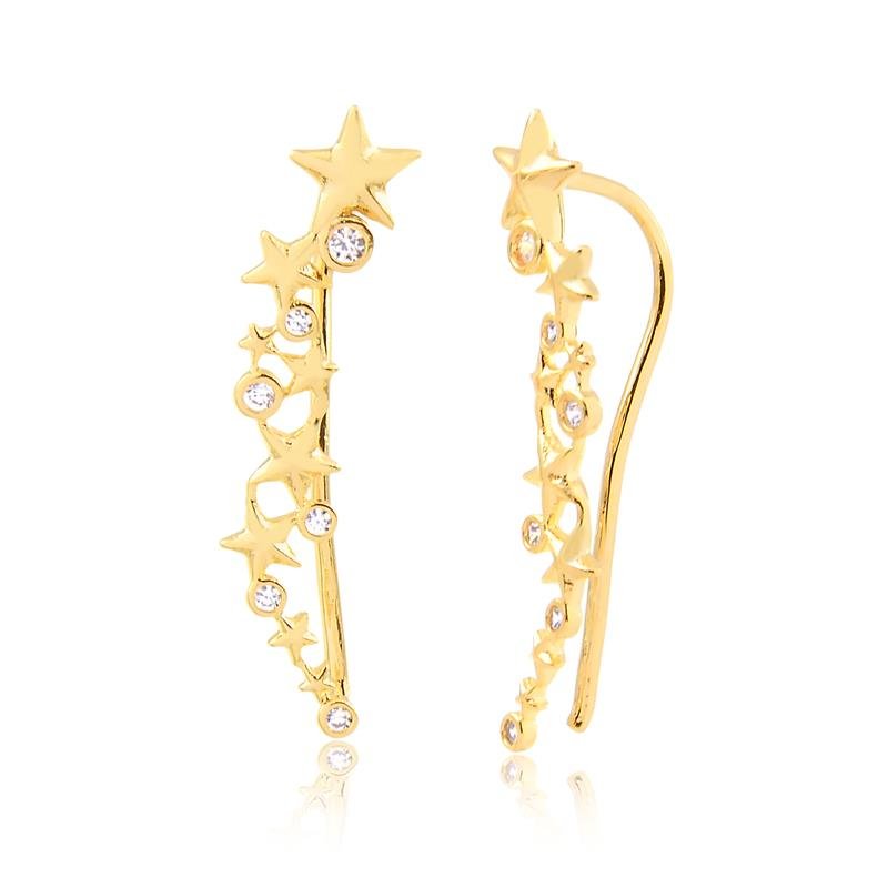 1 Brinco Ear Cuff Com Estrelas E Pedras De Zircônia Folheado