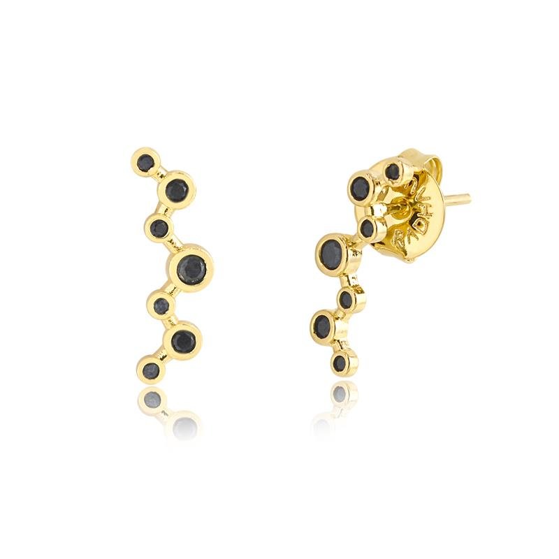 Brinco Ear Cuff Zircônia Preta Folheado A Ouro – Radhau Joias (Cód: 226751)Brincos de design criativo acrescentam originalidade ao rosto, tornando cada produção única.