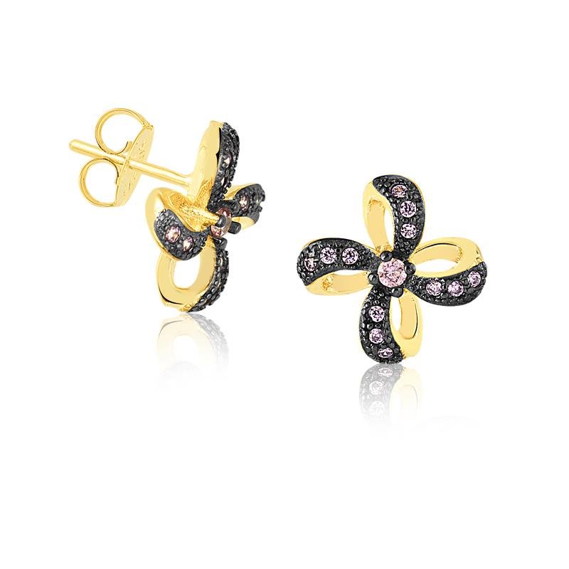 Brinco Florzinha Com Pedras De Zircônia Rosa Folheado A Ouro – Radhau Joias (Cód: 211131)Sensação leve de balanço traz naturalidade e charme a cada passo.