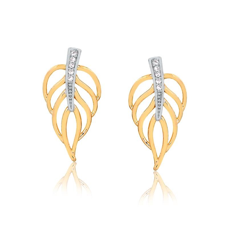 1 Brinco Folha Com Pedras De Zircônias Folheado A Ouro