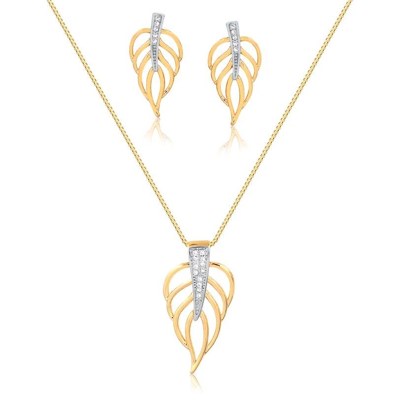 Conjunto Folha Com Pedras De Zircônias Folheado A Ouro 18k – Radhau Joias (Cód: 001991)Valor agregado aparece na combinação de peças que elevam o estilo em conjunto.