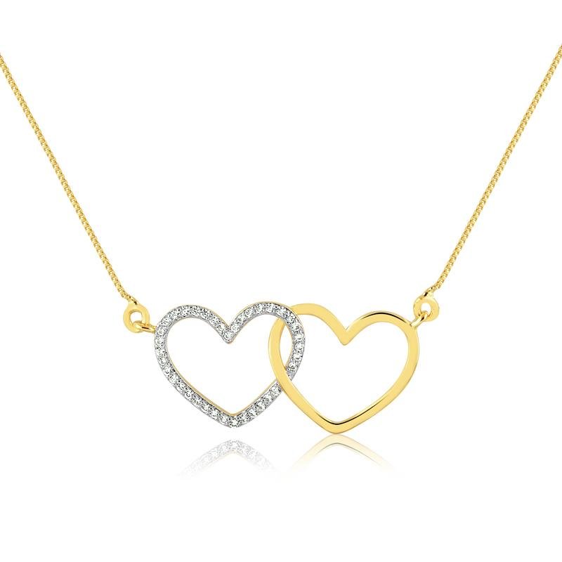 1 Gargantilha Dois Corações Folheada A Ouro Com Pedras