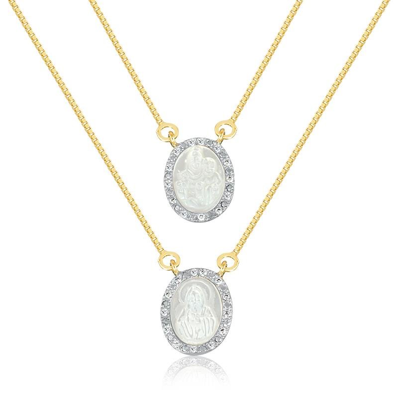 1 Gargantilha Dupla Com Pingentes Redondos Com Madreperola